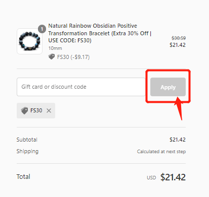Check to make sure the code was copied properly and click “APPLY”, and then the price will change.