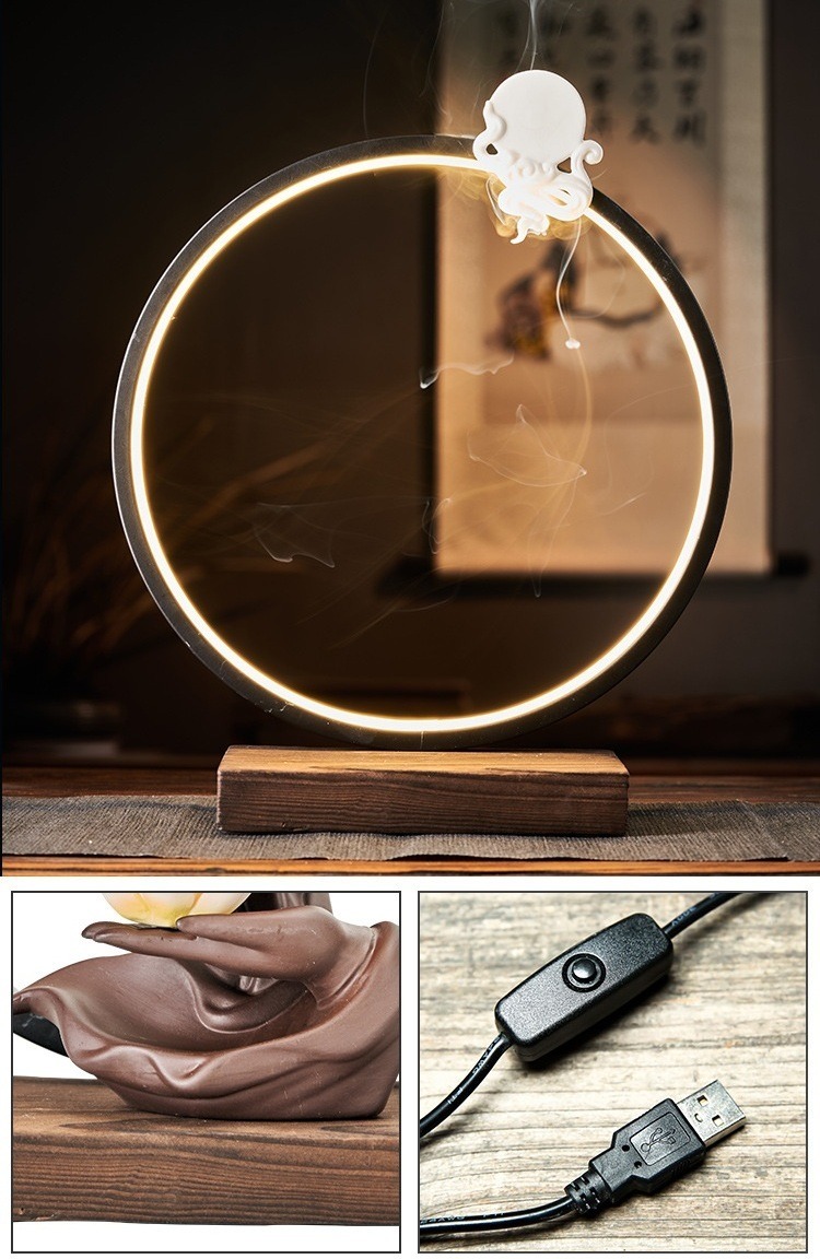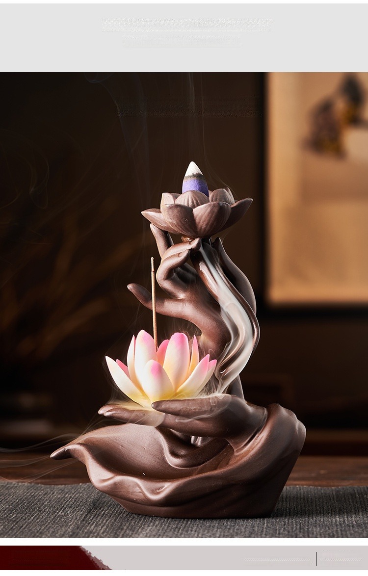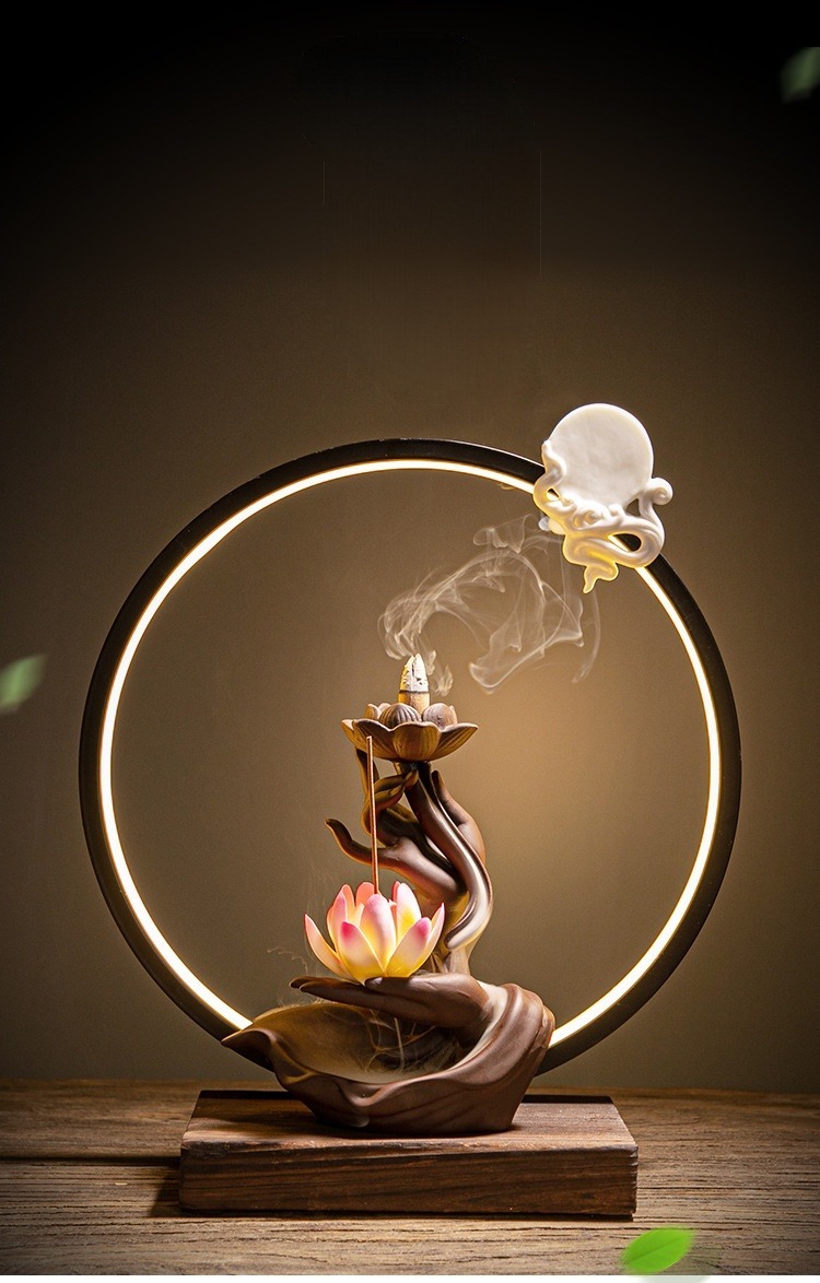 Create a peaceful sanctuary with this elegant Lotus Bergamot Healing Incense Burner, featuring a flowing backflow smoke design and soft ambient lighting. Perfect for meditation, relaxation, and elevating your home décor with a calming spiritual touch.